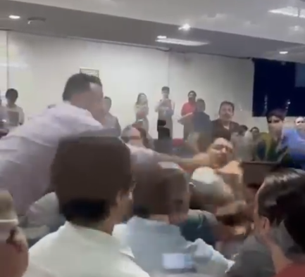 A situação começou quando manifestantes protestavam na vitrine que separa o público do plenário, contra a fala do vereador de extrema-direita Alberto Barreto (PRD), que atacava servidores e também o vereador Isaac do Carmo (PT). Com uma abordagem truculenta, que mostra o claro despreparo da segurança da Câmara, empurrando e dando tapas no braço de trabalhadores e moradores taubateanos, nos quais estavam incluídos militantes do PCBR que são servidores públicos, outros munícipes vieram em defesa da militância do PCBR. Nesse momento, o vereador Pirulito correu da plenária, atravessando a divisória entre parlamentares e população, subiu numa cadeira e começou a gritar tentando intimidar os manifestantes, gesticulando de maneira agressiva para os presentes. Nossa militância, percebendo todo o escalar da confusão, começou rapidamente a tentar acalmar os ânimos e a apartar a confusão, como pode ser visto nos vídeos que estão em circulação (nossos militantes estão destacados por estarmos com o uniforme vermelho).
