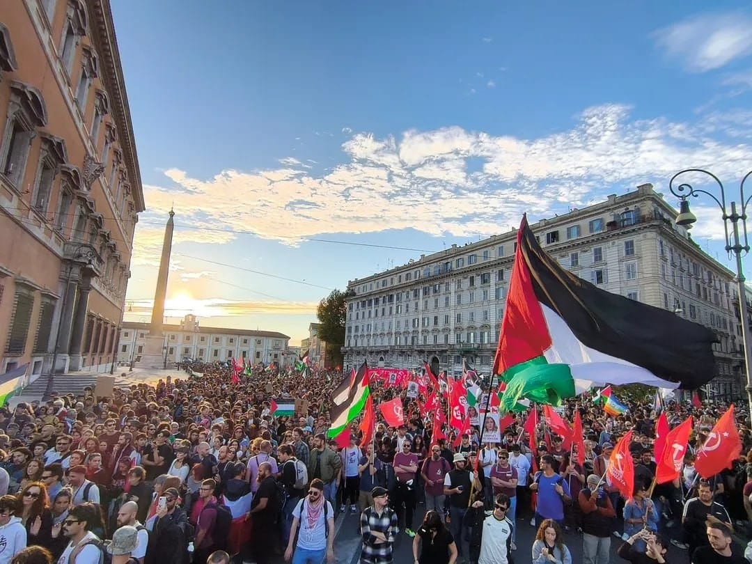 Na esteira desses protestos, a manifestação nacional convocada conjuntamente em 4 de outubro pelas organizações palestinas contou com a adesão da maioria dos sindicatos, mas, sobretudo, de amplos setores das massas populares. As estimativas de participação na marcha – que percorreu um trajeto de 4 quilômetros, da Piazza di Porta S. Paolo até a Piazza S. Giovanni – variam entre 1 e 1,5 milhão de pessoas.